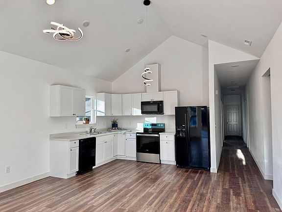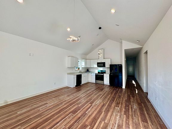 Open-concept livingBlack appliancesBeautiful landscaping