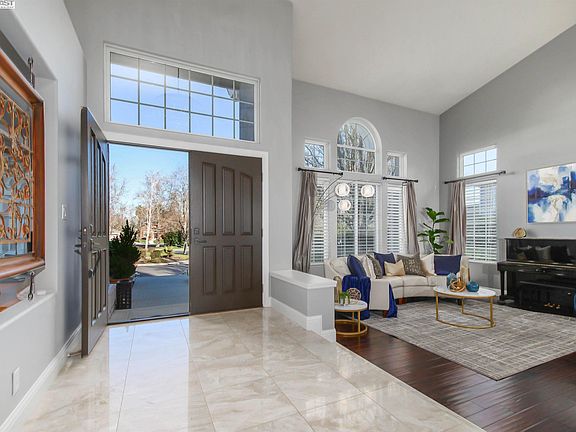This Amazing Executive home in the Resort Style community of LAGUNA OAKS is wonderful! The entry boasts a Beautiful formal living room with soaring ceilings and a 2 -way cozy fireplace seperates the elegant formal dining room which is perfect for family gatherings. The upgrades include engineered rich hardwood flooring, custom window coverings, custom paint, The gourmet kitchen is updated with white cabinets, gleaming granite counters, a large Island & stainless appliances. It expands to the family room with a fireplace and large picture windows open to the lush park-like backyard. The spacious Master bedroom down includes a fireplace/sitting area, open to the large master bath with 2 walk-in closets. There is an office/bed down, 3 beds and a huge bonus room upstairs perfect for friends and family!! This home is east facing and has a great location. It is close to award winning schools, walking trails, community pool, tennis, pickle ball, basketball, community parks, shopping, freeway, Castlewood Country Club, Historic Downtown Pleasanton, BART. Must See this amazing home!!! The 4 car garage includes a charge station.