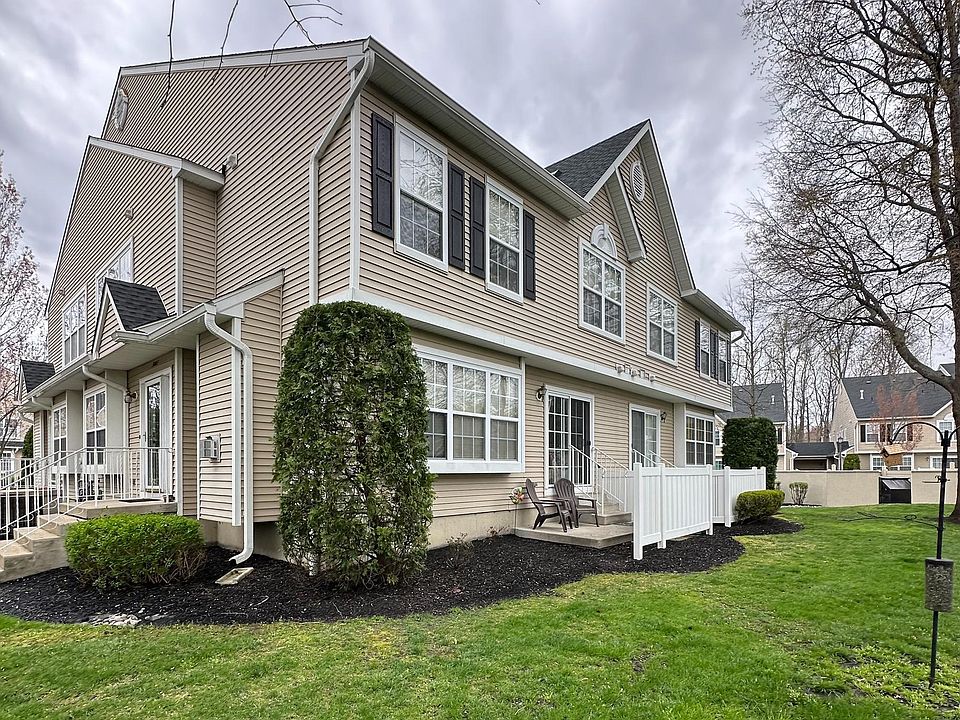 Come tour this beautiful 3 bedroom 2.5 bath townhome with a full basement! On the first floor, the living room opens up to the dining room and both have beautiful hardwood floors, recessed lighting, chair railing, and crown molding. Through the dining room, on your way to the kitchen, is a lovely powder room and access to the basement. This access area has a large pantry area with plenty of room to hold both food and cookware. The kitchen has ceramic tile flooring, white 42" cabinetry, stainless steel dishwasher and refrigerator, built-in microwave, 4-burner gas stove, recessed lighting, and a French slider leading to a quaint backyard sitting area. Open to the kitchen is the family room with neutral carpeting, recessed lighting, and a gas fireplace with marble surround and wood trim. Upstairs, the primary bedroom has neutral carpeting, recessed lighting, lighted ceiling fan, 2 closets (one is a walk-in) and its own private bath with tile flooring, garden tub, stall shower, over-sized single vanity, private water closet, and recessed lighting. There are 2 other nicely sized bedrooms, a full bath and laundry room on this level as well. The basement is ready to be finished or to remain as a very useful storage space! Delancey Place is easily accessible to major shopping areas, Route 295 and the NJ Turnpike. The association takes care of everything outside allowing you to enjoy your free time! Schedule a tour today and Love Where You Live!