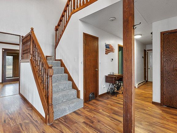 Welcome home! This 3.47 acre property, surrounded by public land has just enough space to make it maintainable! Step into the home and you're greeted with tons of natural light from the 2 story entrance. The kitchen displays an eat in nook, new countertops and new paint on the large amount of cabinets including a pantry. On the main floor you'll also find the master suite with updated bathroom and walk in closet. Upstairs are 2 bedrooms and another remodeled bathroom. Head to the basement to find a massive unfinished area including a bonus garage space. Outside you'll find a barn that can be utilized for all kinds of things including livestock! Easy country living, hobby farm or anything you can imagine, you've found the one!