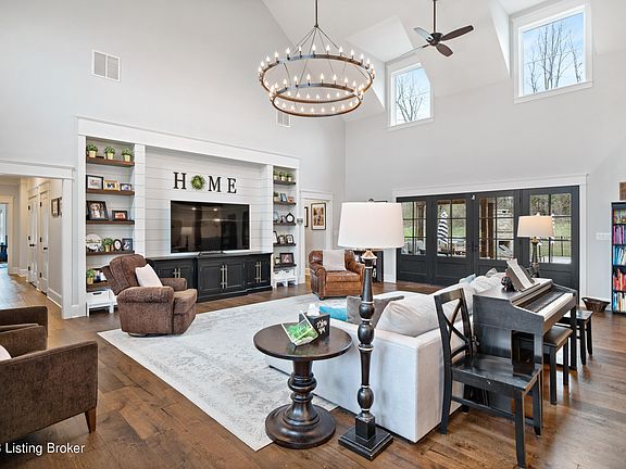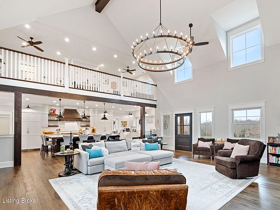 Escape to your own private oasis with this stunning country estate that offers the perfect balance of luxury and convenience. Featuring an open-concept layout and exquisite architectural details, this home is ideal for families who love to entertain. Come home from a long day and park in your spacious 3-car garage with an EV charging station. Drop your belongings in the designated mud room featuring five over sized cubbies, farm sink, and additional washer and dryer hookup. The gourmet eat-in kitchen is a chef's dream, complete with top-of-the-line Thermador appliances, two sinks, a walk-in pantry, and custom cabinets. The open floorplan to the living room boasts a Restoration Hardware chandelier perfect for hosting dinner parties. Relax in the owner's suite with a private spa-like bathroom and large custom walk-in closet. The home has three additional bedrooms on the main level, one with an en-suite bath and the other two with Jack-and-Jill bath. Enjoy the convenience of the spacious central laundry room with a utility sink and counter space for your laundry needs. The guest suite on the second floor provides additional privacy and comfort for visitors. You will also find two private office spaces to accommodate working from home. The basement features a gym with a barrel sauna for staying active and healthy. Outside, enjoy the 18 x 36 heated saltwater in-ground pool and outdoor fireplace on the pool deck, perfect for entertaining. There is also an outdoor shower for rinsing off after swimming. The covered back porch with hanging daybed swing is perfect for relaxing and enjoying the magnificent views. Additional features include a 22kW natural gas generator, AT&T Gigabit internet, and dual HVAC with six zones. The home is fully wired with Cat6 ethernet cable and ample built-in storage. Located in the award-winning North Oldham County school district, this home is just minutes from dining, shopping, and state-of-the-art medical facilities. Experience vacation living every day with this incredible country estate.