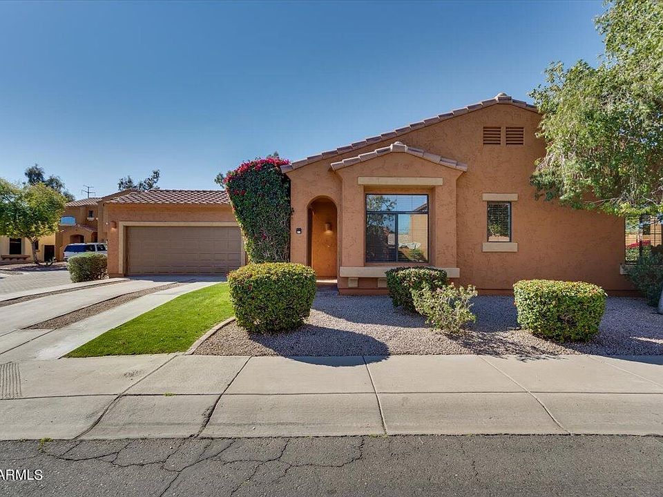 Unrivaled paradise in Encanto at the Legacy. This charming 3BR/2BA abode boasts an an expansive family room, a sunlit breakfast nook off the kitchen, and a master suite with walk-in closet. Enjoy A serene backyard or take a short walk to the community pool. Premier golf and amenities await. Updates include New AC unit, Water heater, interior and exterior paint.