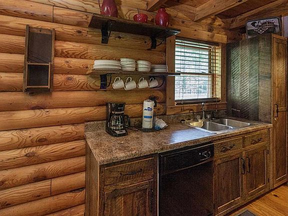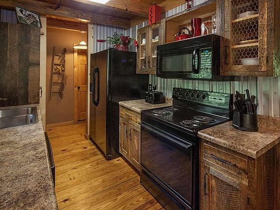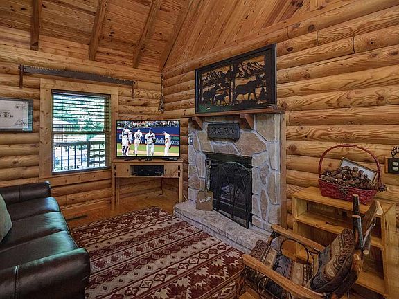 Be prepared to be amazed by the rustic charm of this cabin in Eagles Ridge Resort. As you approach the front door entrance of the cabin you are met by a charming and unique porch swing. As you walk in, you have the main living area, complete with a gas fireplace, cathedral ceiling, wood flooring, double doors go out to the porch. The kitchen features country cabinets and a country theme throughout the dining area. The loft brings you to the master bedroom, large and roomy. Go down to the bottom level, this is where you will find the new media center, and the two other guest bedrooms. No sheetrock down there, cabin feel down to the chair railings. Go outside and enjoy that hot tub after a fabulous day of hiking in the mountains or from shopping the outlet malls in Sevierville.
