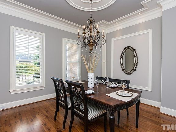 Executive Cary Home with Extravagant Upgrades! All Brick, Former Parade of Homes w/10+ Ft Ceil, Just Refinished Hardwds, Custom Molding, Elegant Formal Dining. Family Rm w/Coffered Ceil, Dbl Side Fireplace Shared w/Screen Porch. Complete Gourmet Kitchen Includes Walk-in & Butler's Pantry, Thermador Appl. 1st Flr Master Suite w/ Hardwoods, Built-in Speakers & Luxury Bath. 1st Flr Guest Suite. 2nd Flr: Bonus Rm, Media Rm, Beds w/Adjoining Baths, 6th Bed Can Be Versatile Flex Space. Fenced Back Yard w/Patio.