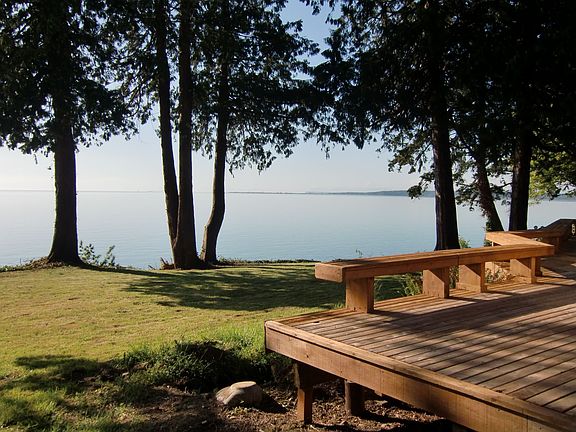 Complete remodel in 2010! Approximately 1.5 acres with large catherdral cedars. Fronts on 135 ft. of Lummi Bay. A large, sandy beach unlike any other in the area, perfect for volleyball and other beach activities. Westward views of the active shipping lanes and the graceful San Juan Islands are exceeded only by the unbelievable sunsets. Recent remodel includes new roof, craftsman style front entry door, professionally refinished solid oak floors, solid oak cabinets, tiled counter tops, new bathroom cabinets, toilet, and custom tiled surround tub.