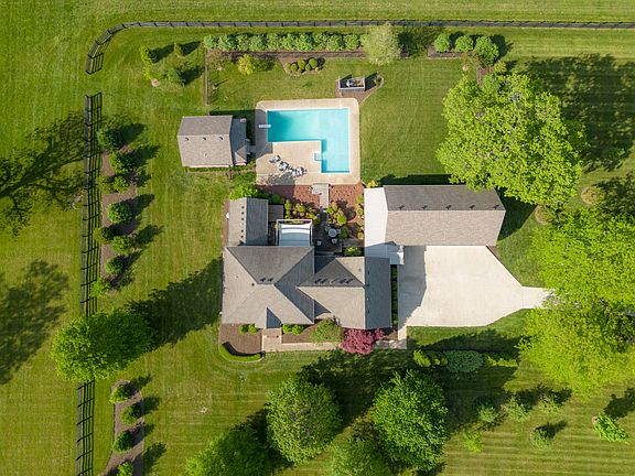 Hide in plain sight on 9.98 acres awaiting a new owner's personal touch. Land features approximately 8 acres of four-plank fenced pasture; a 40'x60' barn with four-stalls and office/tack area; L-shaped in-ground swimming pool; hot tub; a pool house with kitchen and full bath; a two-car detached garage large enough for a large pickups; a 1200 square foot detached studio with half bath; beautifully landscaped outdoor space, and brick entrance with automatic gate.
