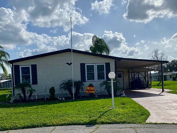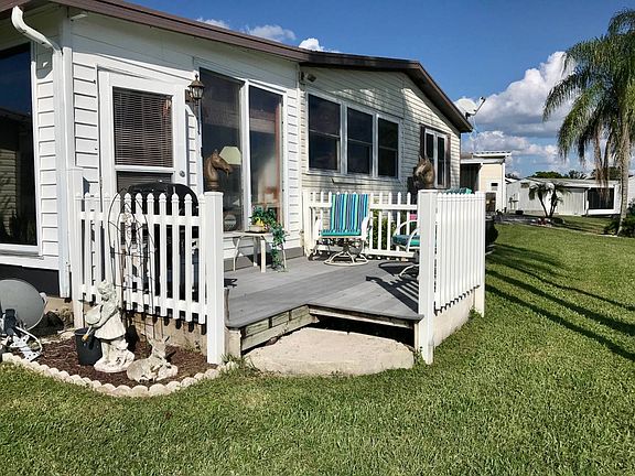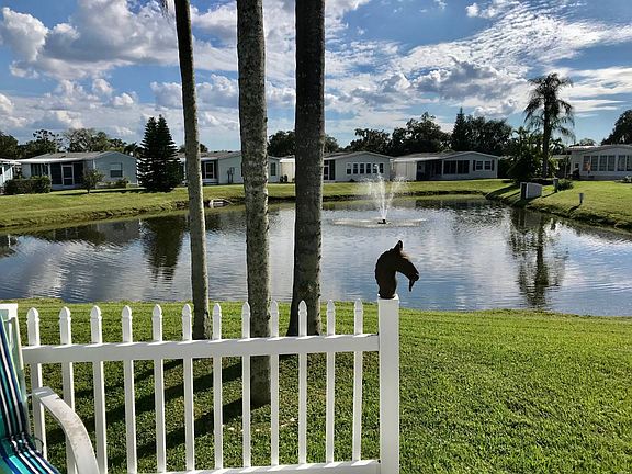 Are you a crafter, a carpenter, or do you like the fish? If you answered yes to any one of these questions I have the Home for you. This 2 bedroom 2 bathroom plus a den home Is located on a Cul-de-sac with a pond, you can fish right out your back door. It has a nice sized shed with numerous carpentry tools that come with the home plus room to do crafting. The home has a wonderful galley kitchen with lots of cabinets storage and countertop space. It features an indoor stackable washer and dryer that are new. Both the bedrooms are nice size and feature large closets. The home is 1296 ft.² of wonderful living space plus a nice size lanai that leads out to a wonderful deck overlooking the pond. There is plenty of room in this home to do all the entertaining you would like. The nice wide driveway gives you plenty of room for parking your golf cart plus there is room for two vehicles under the carport. This home is located in the beautiful gated community of Ridgewood Estates in Ellenton, Florida. Go ahead follow your dreams and come to Sunny Florida. Don't wait too long this beauty won't last forever. Let me help you make your dream of living in the Sunshine State come true. Lot rent $893.68 per month. All listing information is deemed reliable but not guaranteed and should be independently verified through personal inspection by appropriate professionals. Integrity Mobile Home Sales cannot guarantee or warrant the accuracy of this information, measurements or condition of any property. Measurements are approximate. Lot rent is subject to change.