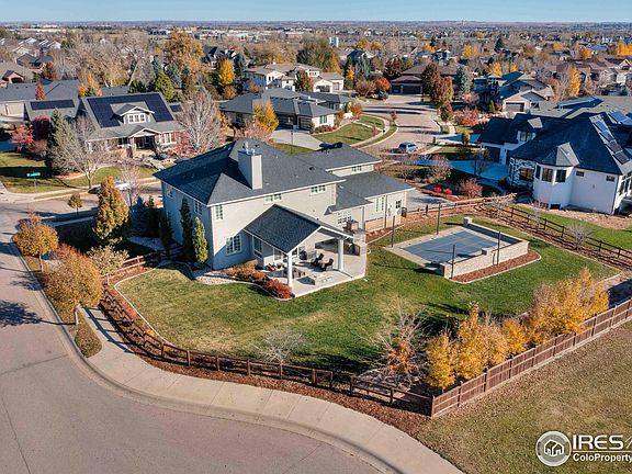 Elegance Abounds in this custom Estate Home located in the desirable Homestead neighborhood in SE Ft. Collins. From the moment you enter, the quality and attention to detail is apparent. Brazilian Cherry, solid wood floors throughout the main, expertly crafted solid wood trim, plantation shutters and crown molding in every room!!! Expansive ceilings and 8' solid doors on both levels. From the formal living and dining rooms to the relaxing family room, there is plenty of space for everyone! The kitchen features SubZero Fridge, Bosch Dishwasher & WOLF Dual Fuel 48" Range! The under cabinet lighting highlights the genuine stone counters and custom Ann Sacks tile backsplash. When not preparing food inside, head outside to another kitchen! Featuring a gas BBQ, fridge, sink, ice container and wood burning pizza oven! Enjoy lounging by your private pool and watching amazing sunsets over the mountains from the covered outdoor living area with fire feature. Upstairs includes two guest suites with attached baths and an additional bonus/bedroom. The Primary Suite is a spa-like get-away! Enjoy an oversized shower and step out onto a Heated Floor! There is plumbing available in the floor if you choose to add a soaking tub in front of the fireplace. The bathroom leads into a custom designed closet & laundry room. The unfinished basement has plumbing rough-ins for bath & wet bar if you need additional space. There are 2 furnaces and A/C units, and the water heater is recirculating! The basement floors and walls have been insulated for comfort and efficiency. Cleaning is easy with the Central Vacuum system. Music throughout the home with an RTI system. Make an appointment today to see for yourself! The attention to detail is limitless in this home.