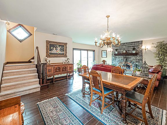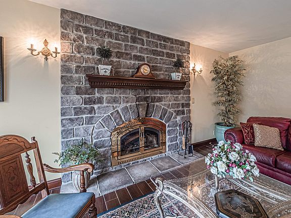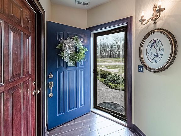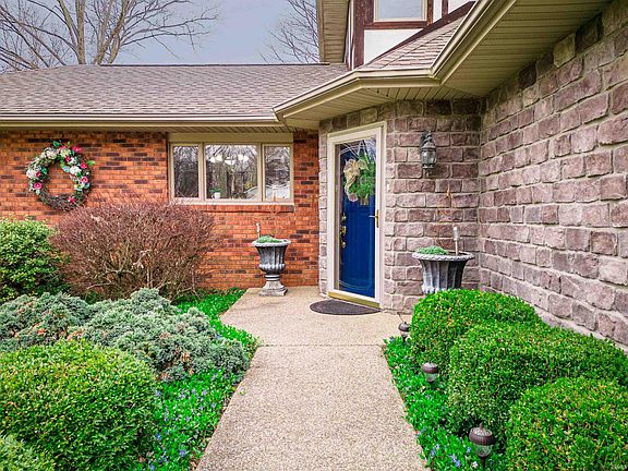 Here's your opportunity to own a beautiful, well-built home on just over an acre lot that is overlooking a shared, fully stocked lake on Evansville's Northwest side. Upon approaching this home, you will appreciate the impressive stone and brick façade and lovely landscaping that guides you to the front door. Inside, you are greeted by a spacious great room that offers a gorgeous stone fireplace equipped with a gold plated Xtrodinair fireplace insert. This great room also offers access to the meticulously landscaped stone patio with Koi Pond. Just off the great room, is the fully applianced kitchen that provides stunning cherry cabinetry with crown moulding and ample storage space. There is additional storage space in the kitchen island that also provides additional seating. Down the hall is the first of five bedrooms (currently being used as an office space) along with the immense primary bedroom. The primary bedroom offers another stone, wood burning fireplace, a huge walk-in closet as well as access to the very large deck that overlooks this beautiful property. Upstairs you will find 3 additional bedrooms along with another full bathroom. Outside is a detached garage with 200-amp service and floored storage space on the upper level. While outside, don't miss the pebble beach at the lakes edge! This home and property are remarkable!