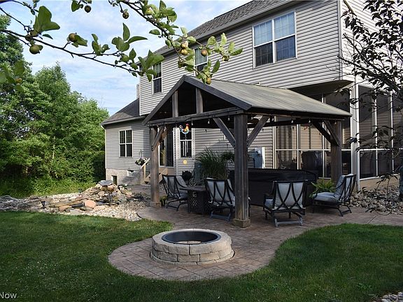 Outside, the property unfolds into a private oasis with personal grass walking trails that wind through the lush surroundings. The back patio beckons with a pavilion complete with electric and a ceiling fan, ideal for outside dining or simply unwinding while overlooking a captivating fire pit and soothing water feature.