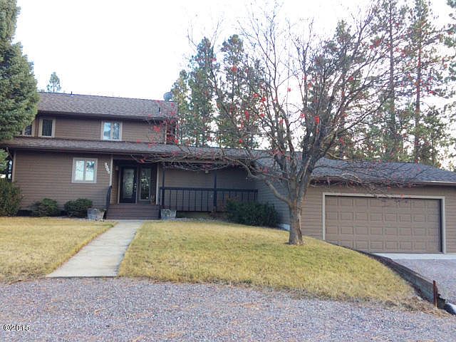 WHITEFISH STAGE~~~ 5 bedroom/3 bath home on 2+ acres with views in all directions including Glacier National Park. On a knoll of whispering pines. Over 4,000 sq. ft. designed perfectly for a large or small family. Vaulted ceilings, gourmet kitchen, large family room, master bedroom on main floor, sun room, and garden beds. Double garage, carport and storage shed, too. Well maintained!