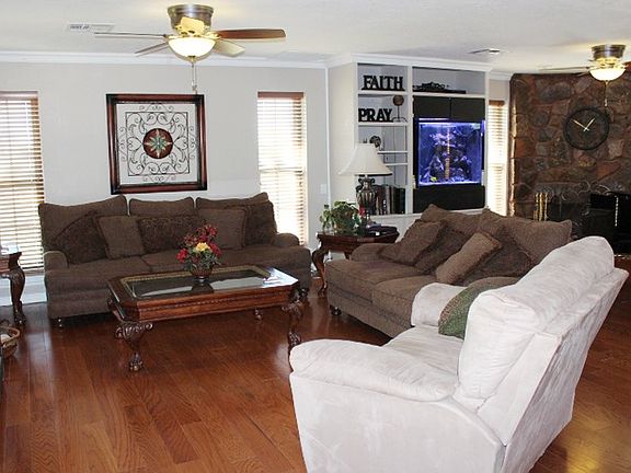 Absolutely beautiful custom built home! This stunning home has been totally updated and is located just minutes from Lawton MacArthur school on 5 acres with a fully stocked pond, circular drive & water fountain. The property is beautifully landscaped and features 3 bedrooms, 3 full baths, 2 car garage and approximately 2452 SF. Upon entering you step into the huge open living room with awesome rock fireplace, built-in book case, 118 gallon salt water aquarium and gorgeous wood floors. The kitchen has been totally updated with an island, granite counter tops and a custom tiled back splash. The master suite has wood floors, crown molding and a relaxing large bath with jetted tub, dual sink vanity and a separate tiled shower. Upstairs is a convenient loft area, guest bedroom and full bath. Other property amenities include an in-ground pool with diving board and slide, 120 SF pool house with half bath, a lovely gazebo, 2100 SF workshop with 5 car garage, a large 2 car metal carport and an in-ground storm shelter.