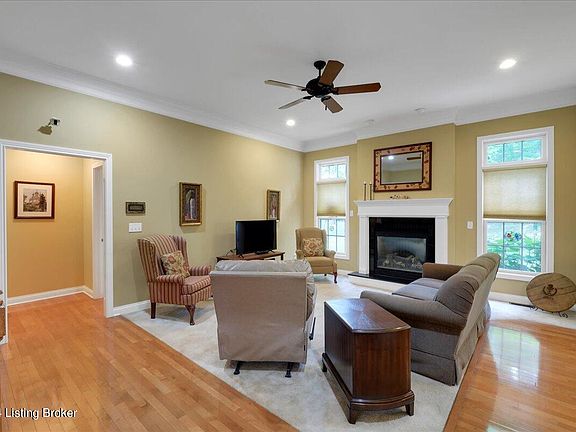 Stately exterior with lovely landscaping, beautiful nearly half acre yard with scattered trees are just the beginning for this lovely home in popular Reserve at L'Esprit. Pretty front porch welcomes you to the leaded glass front door & sidelight. Inside find lovely hardwood floored foyer & dining room welcoming you with high ceilings, tray & wainscotting in the spacious dining room. The living room offers a pretty fireplace & hardwood flooring with inset carpet. A well designed kitchen offers continuous hardwood flooring & stainless appliances. A peninsula offers extra seating between the kitchen & large dining area. Note large windows all around for excellent natural lighting, including transoms above the living room windows. Step outside the kitchen onto the deck, love the views! Just off the kitchen are the pantry, 1st floor laundry & the garage. Generous sized primary bedroom with tray ceiling has double doors to the double vanity bath. There is a separate walk-in shower & commode room, jetted tub below a glass block window for light & privacy. The walk-in closet is off the bath. There are 2 additional 1st floor bedrooms, a full bath & a half bath. An open staircase leads to an exceptional walk-out, nearly all finished, basement. It features a huge family room with space for that pool table, maybe ping pong as well! There are 3 double door closets in the family room. There is a large bedroom with walk-in closet right by the 3rd full bath. There is another finished room with custom shelving for your exercise equipment, office, playroom, scrapbooking, hobby room..... And there is still a large unfinished area with lots of storage space. Just out the walk-out door is a lovely patio leading to the large backyard. The generous 2.5 car garage has a human service door out to the driveway, which also offers lots of room to park. If you would like more green outdoor space, there is a 15 acre neighborhood park with water feature & basketball court. Oldham County School District, if that is on your want list. New primary bath walk-in shower door being installed 7-10 days from listing. Square footage not warranted by seller, agent or real estate company. Buyer to verify.