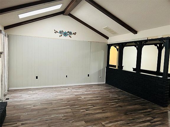 Have a large family? Looking for an affordable home? Come look at this large 4 bedroom 3 bath home! Lots of room to play inside and out. An abundance of light from the skylights in the living room. The beautiful brick fireplace is a real wood burning fireplace with a gas start. Glass doors lead out to the patio to the inviting treed large yard with a privacy fence. There is a 2nd living area also with a fireplace. It has a gas log insert. As well as a built-in bookshelf and storage. It also has glass doors that lead to the covered patio. The kitchen has a breakfast bar that is open to the 2nd living area and also has an eat in area. Room for barstools and a dining table and chairs. Then there is a formal dining room. It is separated from the main living room but has a huge open feel with the use of half walls between the rooms. As you walk through the home to the bedrooms, you will find 2 of the bedrooms have walk in closets for lots of storage. The 4th bedroom could also be used as an office. The hall bathroom has the stool and tub separate from the vanity room for easier access with multiple people. When you walk into the huge primary bedroom with its own walk in closet it also has a glass door leading to the covered patio to the backyard. The double vanities in the primary bathroom are gorgeous with vessel sinks. The home has new carpet and vinyl floor planking throughout. The property has decorative brick fencing with wrought iron gates. AC unit replaced in 2021. Hot water tank replaced in 2023. Gas line replace 2023. Vinyl plank flooring in 2023 and Carpet in 2024. Shed has a concrete floor.