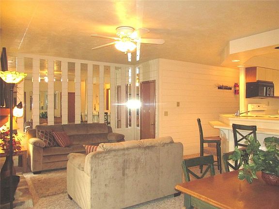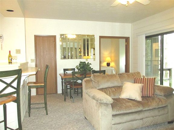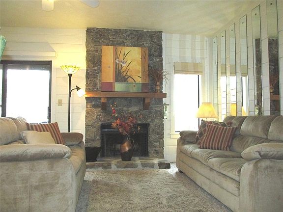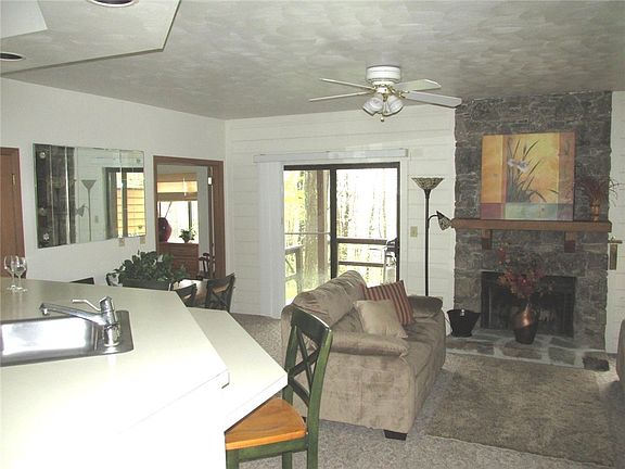 Master bedroom on main level! This end unit, 2 bedroom, 2 bath, condo has been painted (even the cedar) with a soft cream tone that brightens up the entire living area. Mirrored accent strips on the living room wall reflect the natural light. There’s a mountain stone faced, wood burning, fireplace centered in the living room. A glass sliding door opens up to a larger than normal back deck that looks out to the woods. The U shaped kitchen has an extended counter top for additional seating. Works great for a quick bite to eat or for a buffet set up! Double doors lead into the master bedroom with private bath. Second bedroom has access to a hall bathroom. Property is being sold furnished with appliances; seller is offering a one year home warranty. It’s located within an easy walking distance to the summer amenity center that includes tennis courts and heated pool.