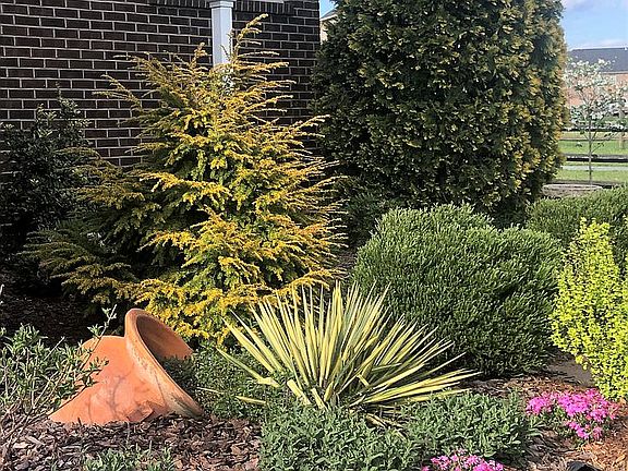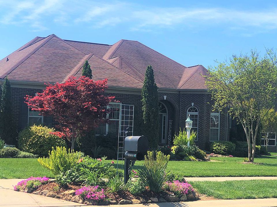 Beautiful water view, natural area on two sides, easy walking distance to pool, brick ranch w interesting roof lines, architectural shingles, beautiful flower gardens surround house, irrigation system. Gorgeous open floor plan perfect for entertaining, hardwoods & large tile in main areas & bathrooms, internal arches and columns, 12 ft ceilings, lots of moldings including crown molding. Stacked stone gas fireplace. Spacious great room. Kitchen has quartz countertops, island, stone backsplash, gas oven. Split BR plan. MBR w/trey ceiling & sitting area. Recently remodeled guest & hall bath. Bright sunroom facing wooded designated wetland, raised brick patio area. Finished two car garage. Neighborhood has walking trails, two ponds, pool.