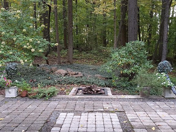 - Features: Backs to Trees, Front Yard, Landscaped, Wooded, Pond, Private, Rear Yard, SideYard(s), Sloped, Suburban