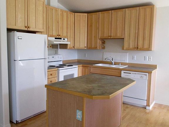 Sun all day: windows on S, W & N. Open floor plan w/vaulted ceilings, fresh painted & tiled fireplace. Upgraded maple kitchen & bathroom cabinets. Wood/laminate floors in all rooms. Generous 2-car garage w/extra storage. Near Coastal Trail, parks, school, churches, Rustic Goat. Treed lot w/aspen, birch, sour cherry, more. Fenced back yard w/deck. Cozy front deck. Quick drive to airport & downtown.