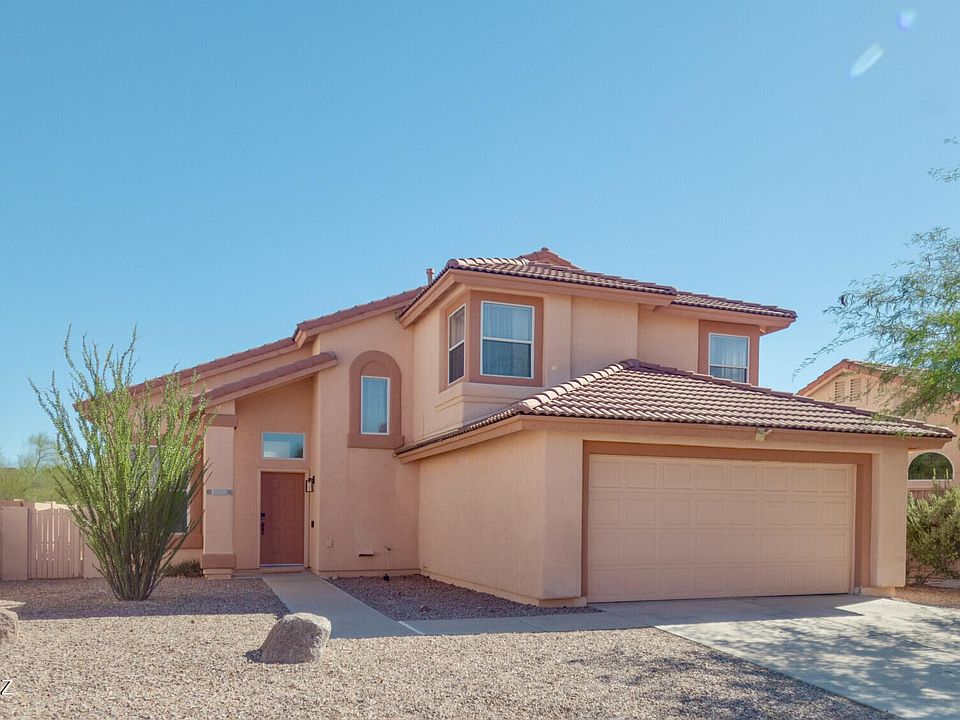This delightful single-family residence, nestled in North Ranch with 3 BR, 2.5 BR 1,799 sq.ft. The two-story dwelling with low maintenance landscaping an open and welcoming ambiance. Updated appliances enhance the modernkitchen, offering convenience and functionality. Furnishings available, making it an excellent option for a successful vacation rental property or a cozy first home. Property is free from poly-pipes, ensuring peace of mind for residents. Enjoy unobstructed mountainvistas from the rear, as there are no rear neighbors. Residents have access to amenities including two resort-style heated pools, a jacuzzi, tennis courts, a playground, and a basketball court within the neighborhood park. An exceptional opportunity for comfortable and well-maintained living in North Tucson.