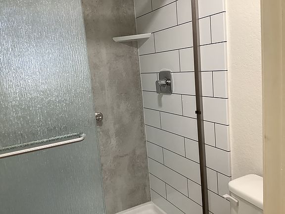 Shower by bath planetNew quartz countersNew bathroomNew white kitchen