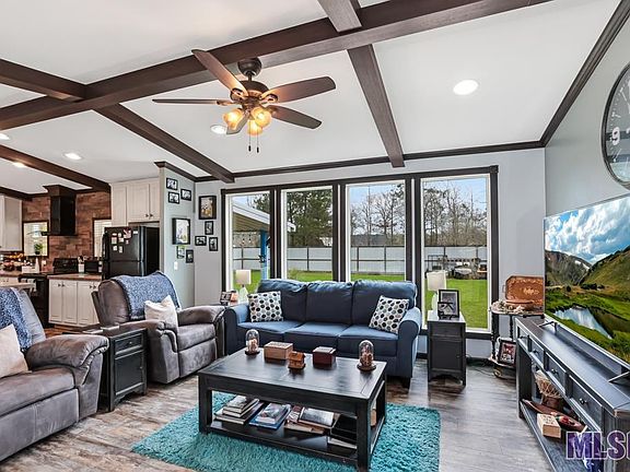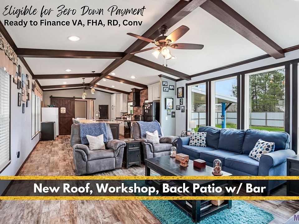 *Zoned as Residential and Commercial* Welcome to this METICULOUS 3 bedroom 2 bath mobile home located in the heart of Livingston. The front yard has tons of parking, a covered & decked front porch, and the home sits on a SLAB. As you enter the home, you will be delighted by the spacious, open living area with tons of windows that fill the space with natural lighting. The beamed ceiling, windows and recessed lighting really make the home feel spacious and open. The kitchen features a large island that doubles as a breakfast bar. You will love all of the beautiful cabinetry and counter space, with an abundance of storage! The primary bedroom has an en suite bath with an oversized soaking tub, separate shower, dual vanity and walk-in closet. Luxury vinyl floors in living spaces, meaning water and scratch resistant! The backyard features a 15X32 patio deck w/steps & step down plus 16' decked ramp (15x20 covered metal insulated w/gutter.) You will love the beach theme, string lights, and custom built bar, perfect for relaxing or entertaining! There is also a 14x16 workshop with electricity. All of this is fully fenced-in with an 8 ft. metal privacy fence (300 linear feet 8' wood framed metal fencing w/7' wide gate access.) Metal roof installed in 2021! Schedule your showing today and make this sweet property your next Home Sweet Home! Preferred lender ready to finance, elevation cert available. 150 yards of dirt was brought in to build property up, and 14 yards of gravel. Homeowners have HVAC serviced twice a year for routine/preventative maintenance. Get your pre-qualification letter and call your favorite realtor today to schedule a showing! Flood insurance is $1000/year