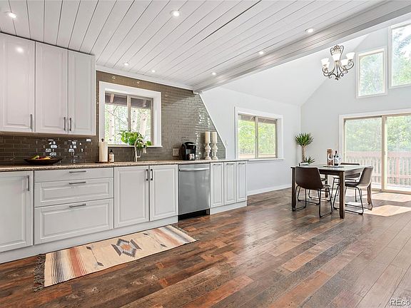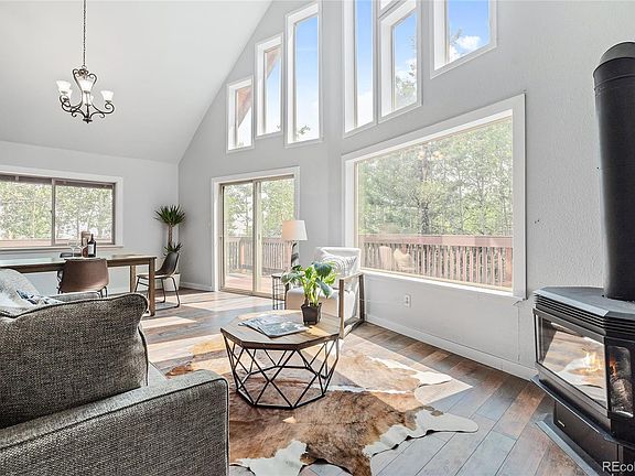 30031 Nancys Lane offers an ideal living experience nestled amidst the natural splendor of the mountain landscape just 45 minute to Denver! The interior showcases a thoughtful open-concept design, allowing natural light to flood the space and seamlessly integrate the indoor and outdoor environments. With three well-appointed bedrooms, 2 of which have ensuite bathrooms, this home caters to a variety of living arrangements. The primary bedroom suite has a new spa-like five-piece bathroom with radiant floor heating, offering a serene and luxurious retreat. To ensure year-round comfort, the home is equipped with a highly efficient hydronic baseboard heating system and four freestanding propane & pellet stoves. The expansive basement provides versatile space for a variety of uses, such as a media room, gym or flexible living area.