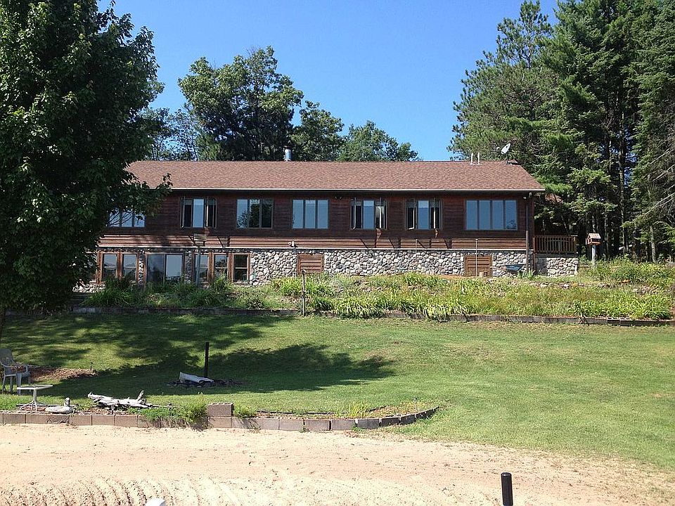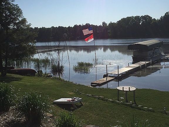 3 BR, 3 bath Walkout rambler on Long Lake. Detached 30x35 garage with bunkhouse including bath.