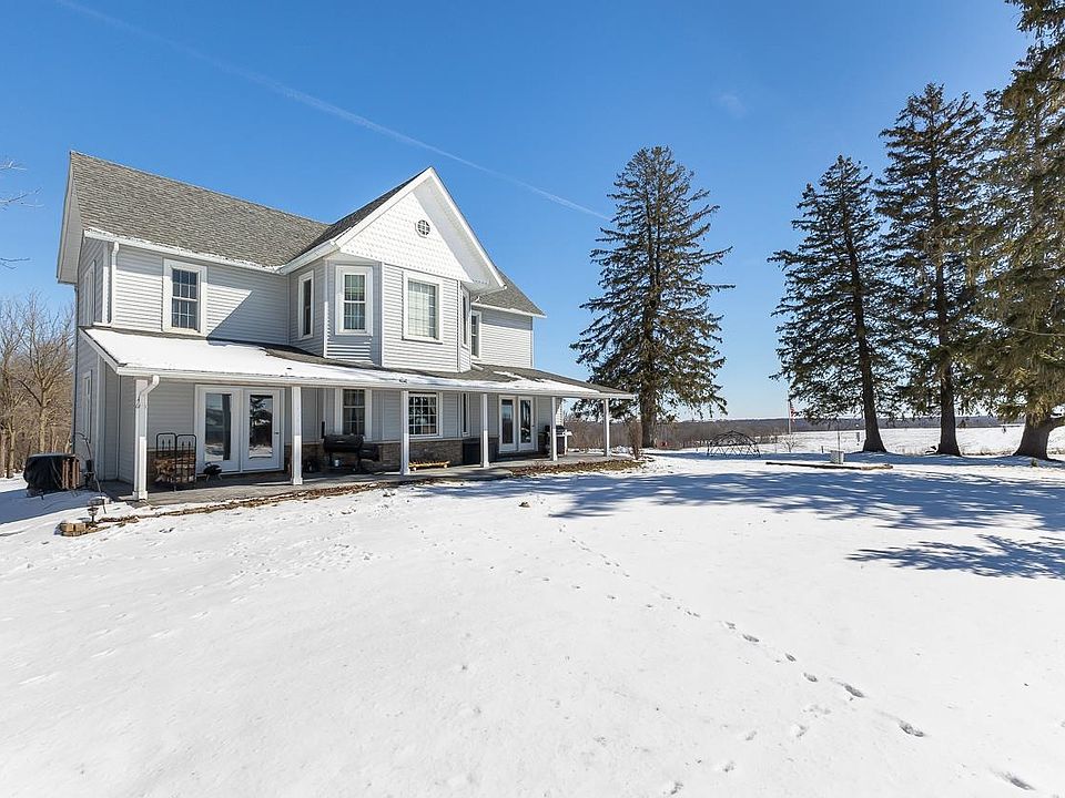 Looking for the perfect home? HERE IT IS! This large farmhouse offers it all. Enter the driveway on the new asphalt drive and around to an oversized two car garage that can easily house three vehicles. Faux wood grain overhead doors add just enough charm to the beautiful stone masonry around the home. Take a peak at the stamped concrete patio that wraps around to the front of the home. But, wait until you see the inside! Custom Kendrick Walnut Cabinets with no slam drawers. Granite countertops and plenty of seating at the large island! Need more storage in the kitchen? The pantry is every persons dream! Complete with closet maid shelving and many outlets. Check out this Main floor laundry and a built in safe. Master bed on the main floor with large walk in closet-bathroom with jacuzzi tub and walk in shower. Beautifully detailed dining room has a ample amount of natural light and check out the accented floor with the wood tile herringbone pattern accent. Bright living room with a lovely pocket door for privacy. Upstairs you will find three generously sized bedrooms and a full bath. In the basement is an ample amount of storage, large family room and bedroom #5! I could go on and on with this well maintained home. Come take a look for yourself and make this house YOUR HOME.