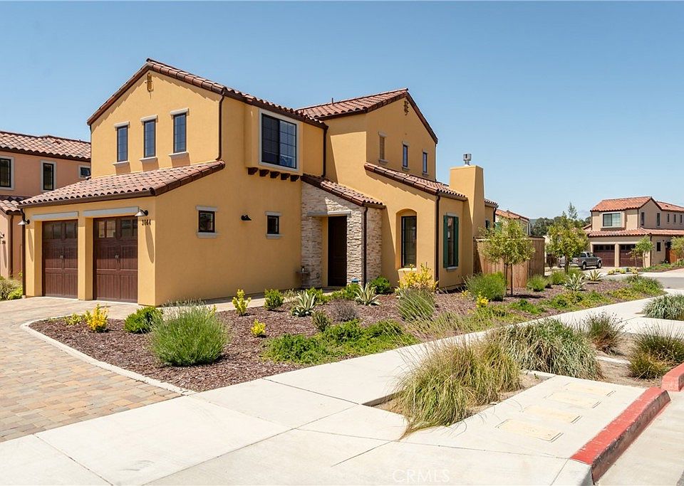 Tuscan inspired residence in the highly desirable Toscano community! Nestled amongst the picturesque setting of the South Hills open space, this special enclave of homes enjoys awe inspiring views, unparalleled access to tranquil hiking trails, and convenient access to Meadow Park. With three spacious bedrooms and three luxuriously appointed bathrooms, this Soave floor plan is situated on a corner lot and perfectly suited for living the quintessential San Luis Obispo lifestyle. Stepping into the entry, you are greeted with upscale finishes such as luxury vinyl plank flooring throughout much of the home, smooth trowel finished walls, 8’ interior doors, and window coverings. The living room, with a cozy direct vent fireplace with concrete mantel and hearth, is a comfortable space to unwind after a day of wine tasting Edna Valley or kayaking in Morro Bay. The social hub of the house, the kitchen is an entertainers dream with granite countertops, LG stainless steel appliances, and premium cabinetry with soft close doors and drawers, and the adjacent dining room with a hanging fixture is the perfect place to gather around the table with family. Your own private retreat, the owner’s suite features peaceful vistas, a walk-in closet with built-in organizers, and a luxe bathroom with dual sinks, granite countertops, and a walk-in shower with frameless enclosure and a tiled surround. With two secondary bedrooms, each with closet organizers, located adjacent to a full bathroom, your out-of-town guests will always feel right at home. Complete with concrete pavers and low maintenance landscaping the rear yard is the ultimate outdoor living space for enjoying a weekend BBQ with friends. The two-door garage with epoxy finished floors will give you plenty of room for storing surfboards and mountain bikes after a fun day of exploring the Central Coast. Additional hi-lights include a tankless hot water heater, air conditioning, hand troweled finestone acrylic color stucco finish, under stair storage, an included security system, and ethernet on both levels. Don’t miss this wonderful opportunity to call 3004 Arezzo Drive home!