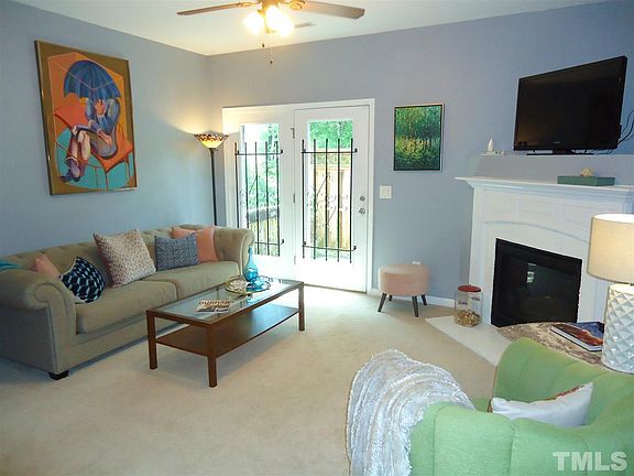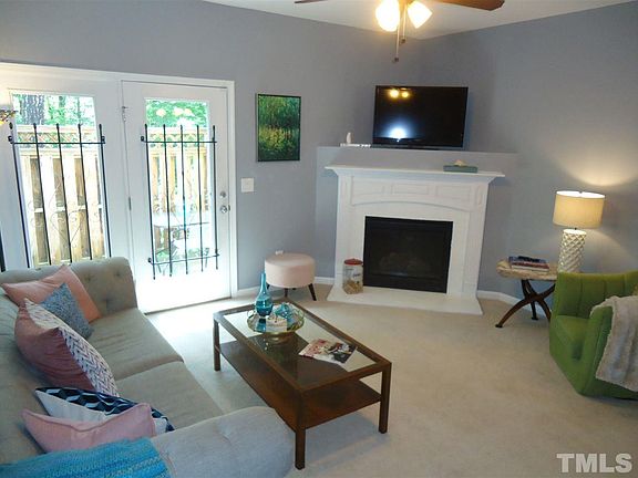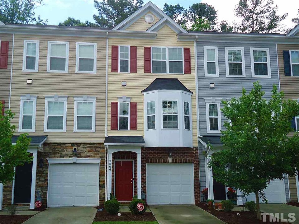 BEAUTIFUL TOWNHOME W OPEN FLOORPLAN AND PRIVACY OUT BACK! Ground level Bonus room w Powder Rm & Patio access - Open Concept Kitchen/Dining/LR sight lines - Granite, SS Appliances, Subway Tile Backsplash, Island, 2 Pantries (Walk-in pantry plumbed/wired for add'l 1/2 bath) - Sparkling Light Fixtures - Corner gas-log Fireplace w Tile Surround - Master Suite w Vaulted Ceiling, 2 Closets, Dbl Vanity & Garden Tub - Guest suite has WIC & Private Bath - garage- Close to RTP- Appliances and warranty included.
