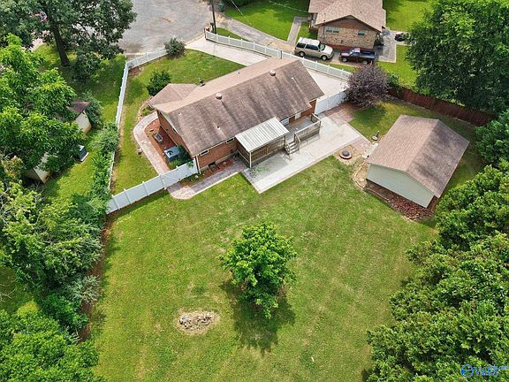This home has been completely updated with original hardwood floors, New cabinets, fresh paint, new baths, smooth ceilings, new appliances, and 22x25 detached garage with work shop and door opener. A must see 35x8 covered back deck that overlooks the spacious back yard with privacy fence. The deck overlooks a 35x10 patio and fire pit. This home is located within ten minutes of all city center locations including Research Park, Redstone Arsenal, The Bridge Street Entertainment and Shopping Center, and the New Toyota Baseball Stadium. This home has never had pets. Roof and HVAC 12 years old and well maintained. New Water Heater.