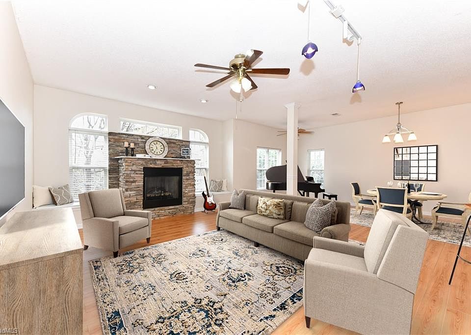 Check out this condo and imagine the MANY ways you can use the open space to your liking…options are endless. Great room/sitting room/dining room area is made even better by the beautiful, stacked stone fireplace surrounded by windows and built in seating plus additional storage under the window seats. Primary bedroom suite includes a walk in closet, bath with a garden tub, and a private screened in porch for relaxing at the end of a long day. Porch has a storage closet and provides a back entry/exit to the home. One parking space is assigned directly in front of the building with ample additional parking as well. Greystone Pointe is conveniently located to shopping and restaurants, but also close to Battleground Park District with 13 miles of trails and greenways, and the Greensboro Urban Loop making around town and out of town travel a breeze. Condo will include a one year home warranty and the refrigerator. Don’t miss your opportunity to make this condo your own.