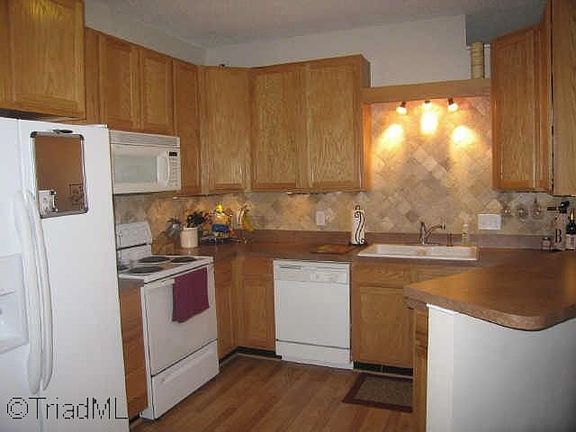 Immaculate upper-level 2BR/2BA condo. Beautiful laminate wood-style floors, vaulted & 9' ceilings, open floor plan, stone fireplace w/gas logs and window seating where tons of natural light pours in! The kitchen with tile backplash overlooks the living and dining areas for great entertaining! The master bedroom leads to an outside screened porch with a storage room. Convenient location to shopping, GSO Country Park, and the Urban Loop for easy commuting. This is a must-see you don't want to miss!
