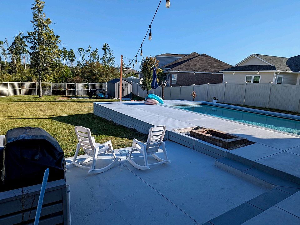 MILITARY CALL FOR PRICE - LAWN & POOL CARE INCLUDED: Hawks Landing 5 beds, 3 baths, plus office, flex workroom, and pool. Energy efficient - green home built in Panama City's popular neighborhood of Hawks Landing. The neighborhood is centrally located between Tyndall AFB and Naval Support Center. Open concept home with 10 foot ceilings throughout. The kitchen has a large center island, 42 inch cabinets, granite countertops, and gas stove. Split floor plan, the master bedroom has a large walk-in closet with double vanities in the washroom, jacuzzi bath and separate shower. Two bedrooms share a Jack-n-Jill bathroom and the third washroom leads to the patio and pool. Extra wide driveway and 3 car garage, underground utilities, sidewalks and greenway. Bay Haven Charter and Mosley High school are within walking distance. $3,250 per month with 2 year leasing options. Rent includes yard maintenance, pool cleaning, and indoor/outdoor pest control. Small/medium pets are allowed, deposits and fees are negotiable based on credit history and military service. No smoking. Owner Pays for pest control, yard and pool maintenance. Renter pays for water, gas, electric, trash, and phone/cable/internet. Renter must have all bills transferred on move-in.