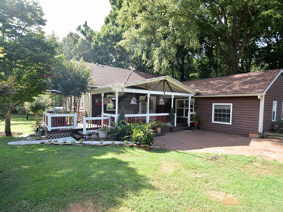 This amazing, updated Craftsman style home near Waxhaw sits on a 1.6 acre waterfront lot! Drive up the lane and see the inviting wrap-around front porch and wonderful landscaped yard. Fish in the stocked pond from your back yard. Great views from the decks or screened porch! Interior is just as unique, with large open kitchen. Hardwood floors, stainless appliances, granite and cedar counters. Large great room. Master suite w/sitting room, whirlpool tub and separate shower.
