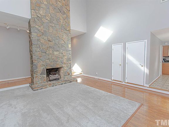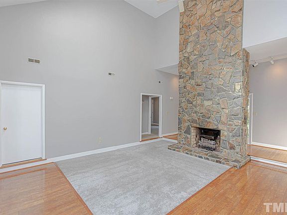 A rare find, three bedroom main floor living with two car garage in Durant Trails. Nestled on a cul-de-sac w/ a wooden, natural large lot. Steps away from wonderful community amenities including pool, tennis courts and playground. Greenway Trails just around the corner. Enjoy sitting on the back deck and porch in the evening. Beautiful two story stone fireplace in the living room. Pull down attic includes floor & cedar closets for clothes storage. Fresh paint inside. Must See second floor space.