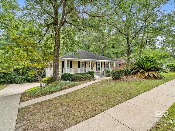 Beautifully remodeled Creole-style charmer located in the heart of Cottage Hill! The striking full-width front porch and beveled glass mahogany front door make a warm first impression, inviting you into an elegant yet comfortable interior updated throughout with top-quality fixtures and finishes. The kitchen boasts custom cabinets with soft-close drawers, granite countertops, and high-end appliances. A sliding barn door in the master suite adds a distinctive touch, leading to a luxurious bath featuring dual vanities and an exceptional walk-in shower with body jets and a rain shower head with LED lighting that changes colors when the water is warm. Additionally, there's a brand-new tankless water heater, and all lighting is energy-saving LEDs. The downstairs area includes a fourth bedroom with its own full bath and a media/bonus room equipped with a built-in beverage cooler and serving area, perfect for football season 565 square feet! Other updates include an architectural style roof, a new AC unit, and a gas furnace. The elevated deck offers a lovely view of the wooded backyard, and the small creek running behind the property provides a green buffer, ensuring peace and privacy. Experience fine living. Buyer to verify all information during due diligence.