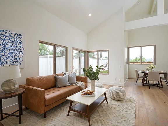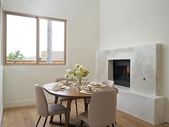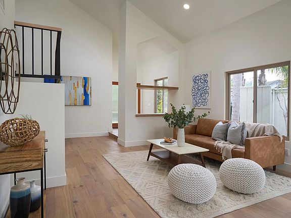 This beautiful Corona La Costa home is located on the corner lot of a cul-de-sac and was just remodeled using quality products and includes a new furnace, A/C, engineered hardwood floors, tile, bath and kitchen cabinets, interior and exterior paint, updated fireplace, quartz countertop, stainless steel appliances, canned lights, doors, trim and more. The first floor includes an oversized living room with vaulted ceilings, a two-sided fireplace between the dining room and family room, an office that can serve as an optional 4th bedroom, a kitchen with new appliances, and a half bath. On the second floor, there is a primary bedroom with an ensuite bath that includes an oversized shower and soaking tub. Additionally, there are two more bedrooms and a full bath on the upper level. The backyard features a built-in firepit and offers views of the neighborhood. There's even a peekaboo view of the lagoon from the primary bedroom. The home is conveniently located just two houses away from La Costa Canyon Park, which provides amenities like tennis courts, sand volleyball, basketball, and a playground. The neighborhood includes low HOAs and a private park area for residents to enjoy. The home is within the San Dieguito Union High School and Encinitas Union School District.