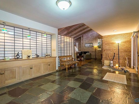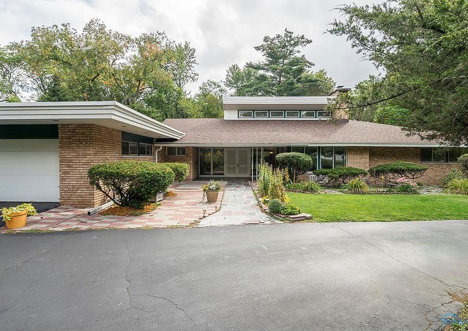 Mid Modern with Frank Lloyd Wright influences on over 1/2 acre. Expansive slate entry with Koi Pond. Vaulted wood ceiling enhances open living/dining areas, rich architect. Family room with bookshelves & brick fireplace. Gourmet tiled kitchen, Viking, Range + double oven ect. New Roof/Boiler. Circular driveway for added parking.