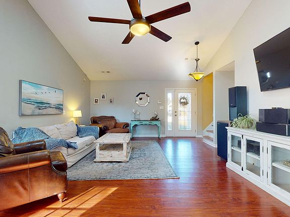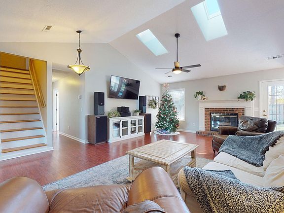 Nestled on a large 1/3 acre cul-de-sac lot (larger than the fenced area), you will find your adorable 3 bedroom, 2 bath home in the popular NorthChase community. You are greeted by a beautiful custom front door and entry. Inside, you will find an open and bright floor plan with soothing paint colors. The focal point of your spacious living room is the wood burning fireplace surrounding by a brick mantle, high ceilings and skylights. Wood laminate flooring in living areas makes for easy living. Your kitchen offers lots of counter space, a pantry, and a dining area with access to the backyard. Outside, you will love entertaining family and friends on your open-air patio within your privacy fenced-in yard while enjoying the wooded backdrop. Plenty of storage in your 2-car garage or wired detached garage/ workshop. Roof replaced in 2021. There is a finished room upstairs with a walk-in closet that can be used as a playroom, office, etc that is not ''permitted'' but is included in the heated square footage in the listing information. NorthChase offers its' residents a community pool, tennis courts, basketball court, playground, trails, ponds for fishing, and lots of social activities. Conveniently located near the beaches, restaurants, shopping, and the historic downtown riverfront. All of this plus home is backed by one year home warranty!