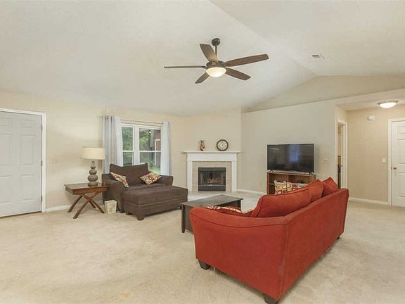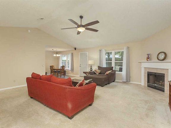 Nestled under the shade of a wise oak tree, this home is everything youâre looking for in a property within Spanish Trace Estates. Upon stepping in the front door, you will notice a neutral palate, each space freshly painted. From the entryway, first door on the right opens into a generously sized laundry room with loads of extra storage, that also provides entry to the 2 car garage. Straight ahead we enter the living room; vaulted ceilings and a large window give this room a spacious feeling, meanwhile the fireplace brings it together as a focal point. Passing through, we find a breakfast nook open to both the living room and the kitchen, perfectly sized for your dinner table and chairs. The kitchen boasts all electric appliances, as well as ample cabinet storage and countertop space. The master suite is situated near where we came in, off a hallway past the laundry room. The master bedroom offers space enough for your king size bed and the rest of your furniture, as well as his and hers closets. The master bath is a cozy retreat, complete with double vanity, shower/tub combo and an additional linen closet. This home is a split floor plan, and as such we find the two additional bedrooms and additional full bathroom across the other side of the living room. Through the back door we step out onto an open patio just waiting for your grill and outdoor patio set. A barn-esque shed graces the back of the property, welcoming you to bring your green thumb and plant a victory garden. This property is a blank slate, from the front curb to the front door, front door through back, and all the way to the property line. Come on in and paint your perfect picture of home.
