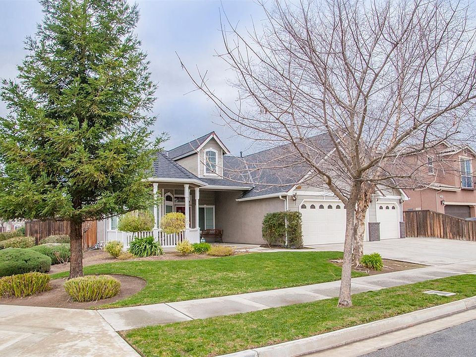 This beautiful Lennar built home is sitting on a spacious corner lot in northwest Visalia. The architectural design, mature landscaping, and front porch provide a welcoming exterior. The floor plan has generous room sizes. High ceilings and the many windows add to the feeling of spaciousness. The kitchen features granite counters, high cabinets with room to decorate above them, a roomy pantry, and seating at the counter. The front room can be a formal dining room or additional living room. The master suite has it's own sitting area, French door to covered patio, enormous walk in closet and large bath with separate tub and shower. Amenities include wood look laminate flooring, two tone paint, two inch blinds throughout, recessed lighting, and wainscoting in dining area. The backyard retreat is low maintenance and is California living at it's best. It features a gorgeous quartz bottom pool and over-sized spa with removable safety fence, covered patio, and side yard with faux grass.