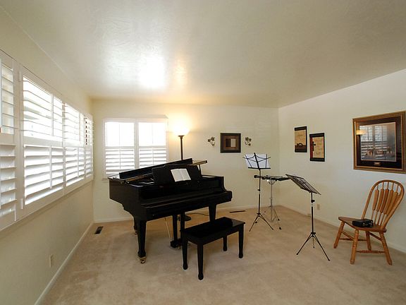 WOW! This well cared home in Pleasant Valley is a delight to show (and own!). Meticulous landscaping compliments the steel siding and recent composite roof. Plantation shutters accent the windows of the living room. Step into the kitchen and you will be impressed by the number of cabinets and the counter space. Skylights allow natural light to filter in to the kitchen. A main level sunroom/family room opens off of the kitchen dining area and offers vaulted ceilings, tiled flooring, a commanding tiled gas fireplace, built ins that include a wet bar, skylights and Pella windows that offer natural lighting. A large covered patio includes a swing for relaxing at the end of a busy work day. A tiled hall leads to a laundry room with built in ironing board, a 3/4 bath and a bedroom hobby room with a built in stand up safe that is perfect for storing guns or it could easily be a wine cellar! There are two storage areas in the basement-one has built in cabinets and a utility sink. There is also a storage closet on the west side of the home near a 2nd patio that has views of the mountains. Central air keeps the home cool in summer and an automatic sprinkler system keeps the landscaping looking gorgeous all summer. This is one home you do not want to miss!!