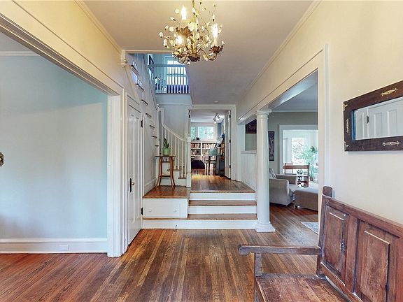 Timeless architecture and character abound in this spacious center hall colonial home with CENTRAL AIR in the highly coveted "All Schools" Onaway Neighborhood! Step into a gracious foyer with gorgeous staircase. Grand scale rooms are the highlight of the first floor, which features two fireplaces! One in the living room and one in the cozy den tucked into the staircase. A truly unique and special layout. Off the living room is a bonus family room that steps out to a deck with built-in hot tub. The dining room features beautiful built-ins that mirror the leaded glass windows above them. Every turn you take in this home is leads to another exciting space primed for a new owner to breathe new life into it! The kitchen space offers so many possibilities to create your dream kitchen or love it just the way it is. The second floor has a nice landing that steps out to a little porch area with newer decking and storm door. Many roof improvements over the years. Four bedrooms and one full bath on the second floor with dual vanity. The third floor, while unfinished, is full of potential to create a fifth bedroom or additional office space if needed. The finished basement is complete with an additional full bath. A well loved home indeed.