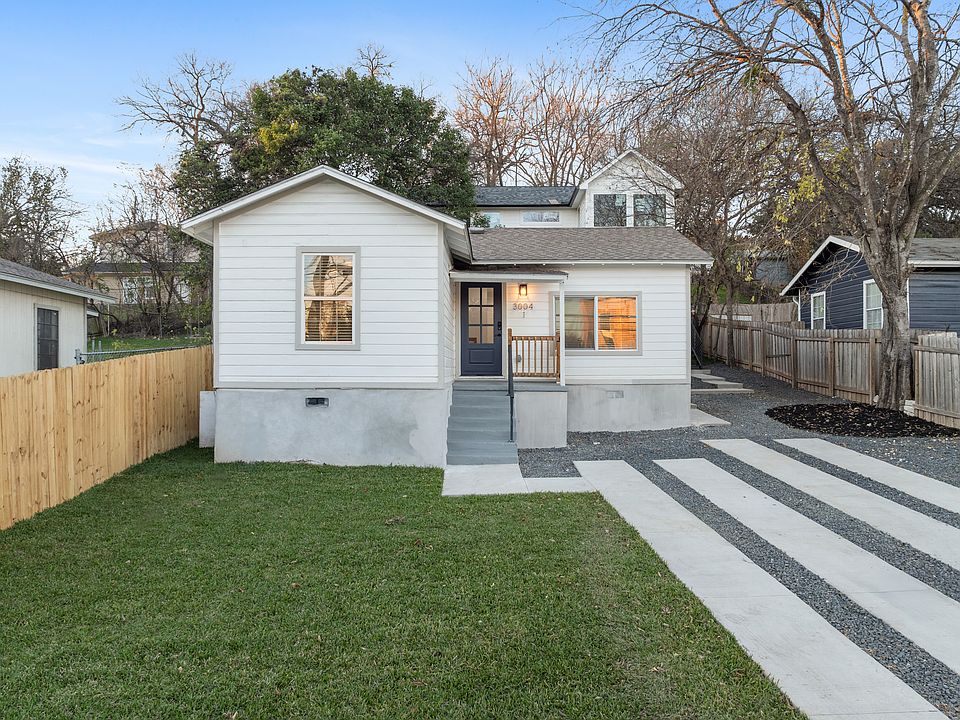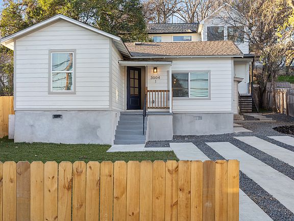 Enjoy this charming three-bedroom, two bath home, completely renovated down to the studs in 2022! Step through the front door into a cozy living room seamlessly connected to a beautifully designed kitchen, complete with an island and breakfast bar. The spacious primary suite is thoughtfully set apart from the other two bedrooms, featuring a walk-in closet and a stunning en-suite bath. The additional bedrooms are located at the front of the home and share a full bath conveniently situated between them. This home offers engineered wood flooring, quartz countertops, a newly added laundry room with shelving, and a pantry space off the kitchen. The exterior is equally inviting, with a freshly landscaped front yard and a brand-new wood fence offering privacy and curb appeal. Minutes from downtown, this home is move-in ready and waiting to welcome you!
