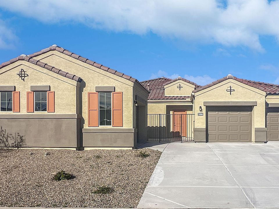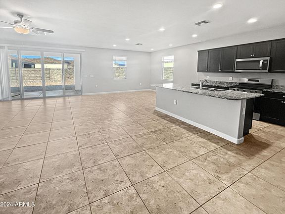 Welcome to your dream home in the heart of Buckeye, AZ! A stunning 3-bedroom, 2-bath gem nestled in the sought-after Tartesso community. Built just a year & a half ago, this home boasts modern elegance & exceptional craftsmanship. You will be thrilled as you step into the kitchen, featuring beautiful cabinetry, granite countertops, and stainless steel appliances. The Great Room floor plan creates a flow throughout the home, perfect for entertaining friends and family. Escape to the primary bedroom, complete with ensuite that will impress. The oversized shower, dual sinks for added convenience, & a spacious closet to accommodate all your wardrobe needs. No detail has been overlooked - tile and laminate flooring adorn every corner of this exquisite residence. The 3-car split garage offers ample space for vehicles and storage. And don't forget the backyard - gravel already installed - it's a blank canvas awaiting your creative touch to transform it into your very own oasis. Don't miss out on the opportunity to call this your forever home. Experience luxury living at its finest. Call for your private tour & make this home yours before it's gone!