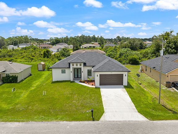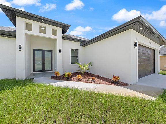 For Rent Be the first to live in this brand-new 3-bedroom + Den, 2.5-bath home, completed in April 2025. Located on a spacious 0.25-acre lot in Lehigh Acres, it offers modern design, open living, and a large backyard with a full sprinkler system. The open floor plan features 10' ceilings throughout and 11' coffered ceilings in the living and primary suites. The Den can serve as a home office or 4th bedroom. The kitchen is equipped with quartz countertops, stainless steel appliances, and a large island designed for cooking and entertaining. The primary suite includes a walk-in shower, double vanity, and private water closet. All bedrooms and baths have tile flooring. A covered lanai and exterior half bath make outdoor living easy. Additional features include hurricane-rated windows and doors, a 2-car garage, pre-wiring for security, and modern finishes throughout. Conveniently located near Sunshine Blvd and SR 82, with quick access to shops, parks, and more.