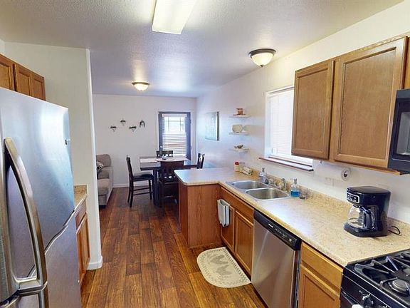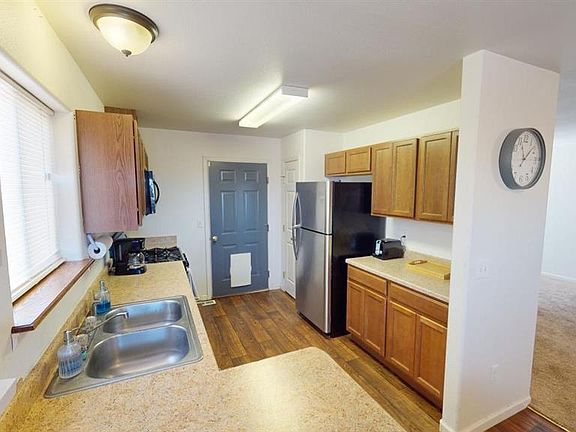 Welcome to this beautifully maintained 4-bedroom, 2-bathroom home located in one of Alamosa's newest subdivisions. This charming ranch-style residence offers a bright and open layout, perfect for modern living and move-in ready convenience. The kitchen is equipped with oak cabinets, stainless steel appliances, a pantry, bar seating, and a designated dining area. The primary suite boasts a spacious bedroom, double closets, and a convenient 3/4 attached bath. Enjoy outdoor living with a covered front porch and a large backyard that includes a patio, covered grill area, firepit, and playground set. The xeriscape front yard requires minimal upkeep while adding to the home’s curb appeal. Additional highlights include a 2-car attached garage, forced air heating, and a Rinnai tankless water heater. This property has been successfully used as a Short Term Rental, with furnishings available for negotiation. It’s an ideal choice for a primary residence, long-term rental, or short-term rental investment. Don’t miss out—contact today to schedule your showing!
