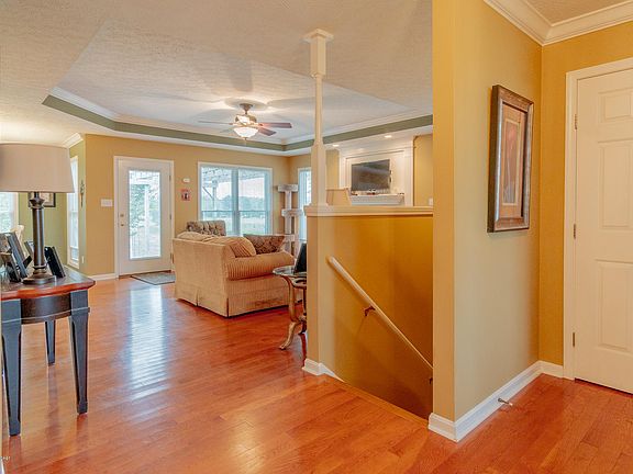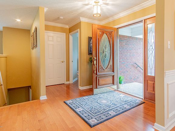Hurry to see this all brick 3 bedroom 2 full bath ranch in Linnwood; Oldham County Schools! Great split bedroom plan, open and bright with lots of natural light; beautiful hardwood floors and crown moulding throughout! Spacious Living Room with fireplace, walks out to trellised patio from which you can take in the great views of the countryside!. Kitchen featuring granite counters, glass tile backsplash and stainless appliances (which remain), is flanked by ample size Formal Dining Room and Breakfast Room,leading to convenient laundry/mud room. Primary Bedroom offers vault ceiling, huge walk-in closet with built-in organizers, luxury Bath with his & her granite top vanity, whirlpool, and walk-in shower. The second Full Bath (ceramic tile, granite vanity) and two guest Bedrooms (vault ceiling and closet organizers in one, walk-in closet in the other) complete the main living level. Enormous basement includes finished exercise room and work bench area. Two car attached garage, 9x12 storage building, and an awesome backyard for your enjoyment! Roof shingles replaced in 2013, water heater new in 2020. Fantastic location, peaceful and quiet, yet only minutes to shopping and dining, schools, and I-71! Don't delay, this will go fast! Seller is offering a 1 year HSA warranty at closing.