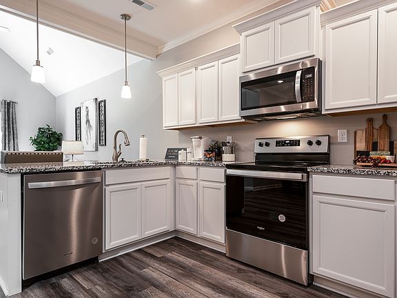 The delightful Newport II offers quaint charm starting with the lovely front porch.Upon opening the front door, you are drawn to the open great room, gourmet kitchen with oversized island and charming dining area that opens to rear patio. The master suite is large with attached bath and oversized closet.